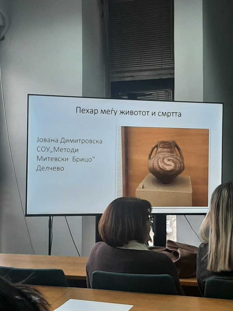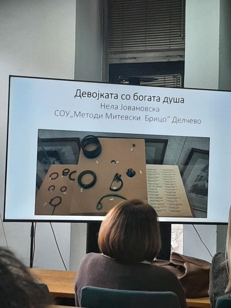 На завршниот настан беа прочитани најдобрите приказни. Меѓу најдобрите 10 се најдоа и приказните од нашите ученички Јована Димитровска и Нела Јовановска а под менторство на професорката по Латински јазик – Билјана Ивановска.Ученичките инспирирани од нашето културно наследство истражуваа, направија фотографии во Археолошката поставка во Делчево, поврзуваа факти и фантазија, создадоа приказни со кои достојно и успешно го претставија училиштето и општината.