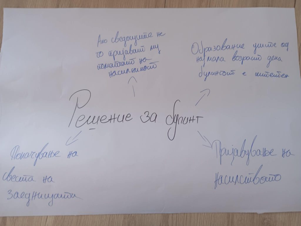 Во завршната фаза од проектот беше организирана и работилница со родители кои имаа можност да се информираат за важноста на нивната вклученост во создавањето безбедна училишна средина и превенцијата од насилство. Преку дискусии и примери од секојдневието се потенцираше значењето на меѓусебната комуникација и соработка меѓу учениците, родителите и наставниците.